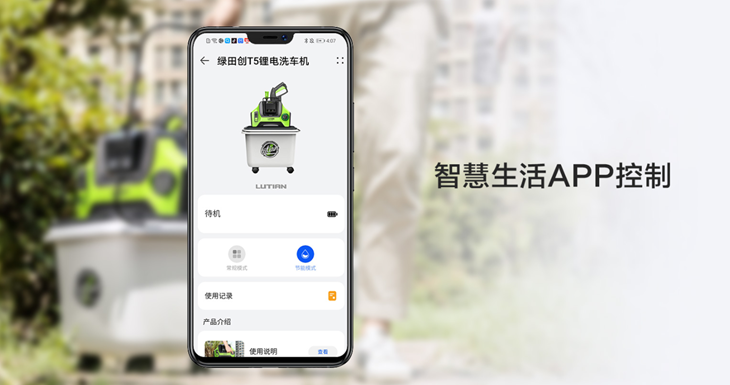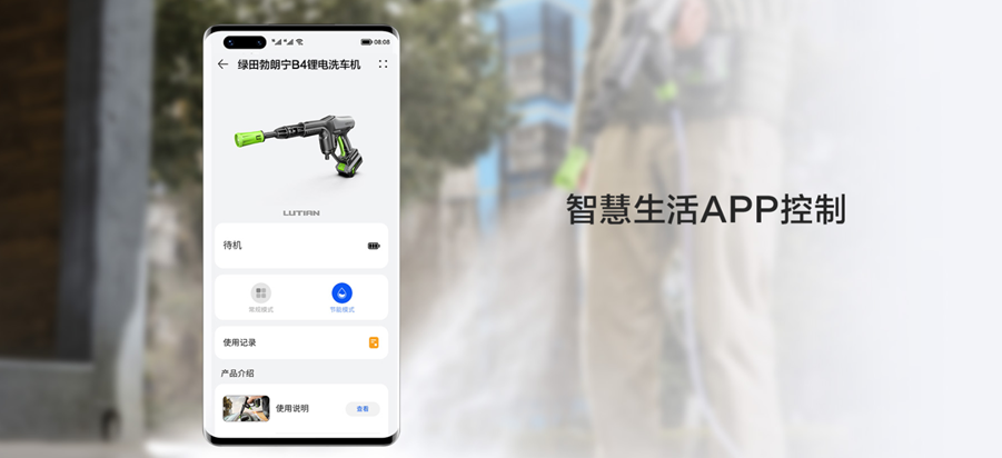 全新版本的绿田洗车机支持连接华为鸿蒙系统Harmony OS。在支持鸿蒙系统的手机设备中,用户打开手机智慧生活APP( 或NFC功能)以及绿田清洗机开关,连接成功后,可随心切换常规、节能两种模式,通过手机端实时在线查看设备电量及使用记录,方便用户了解设备状态,管理设备,带给用户更高效便捷的智慧生活体验。